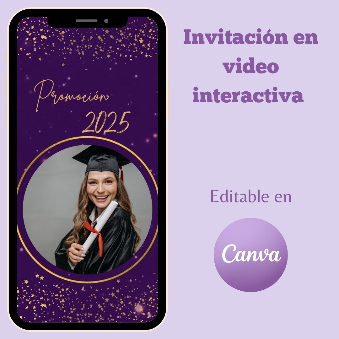 Plantilla editable de invitación Grado/Invitación graduación de Canva/Invitación Digital en Video grado/Editable en Canva/Interactiva